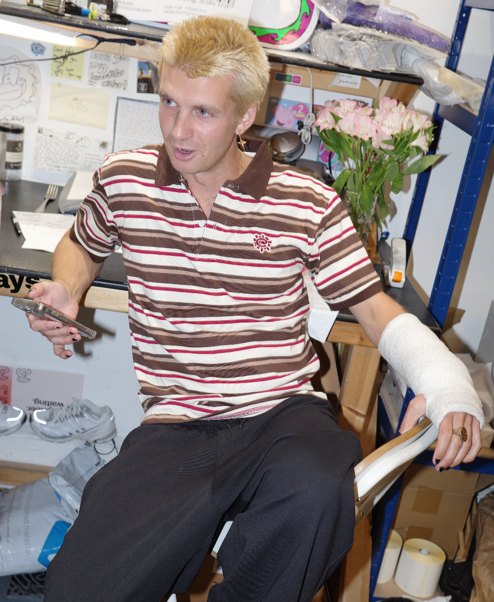 black and grey stripe polo
