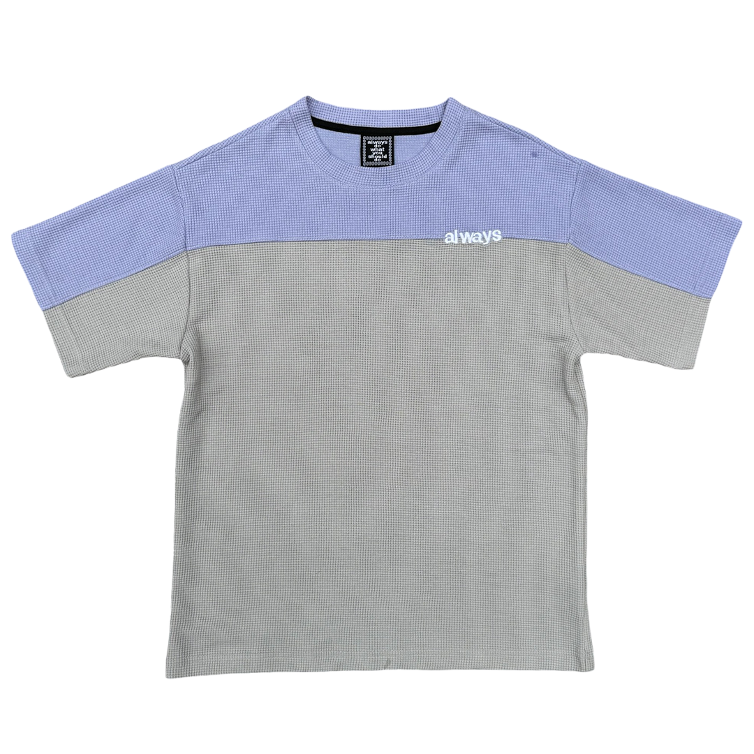 panelled waffle tshirt - lilac/silver